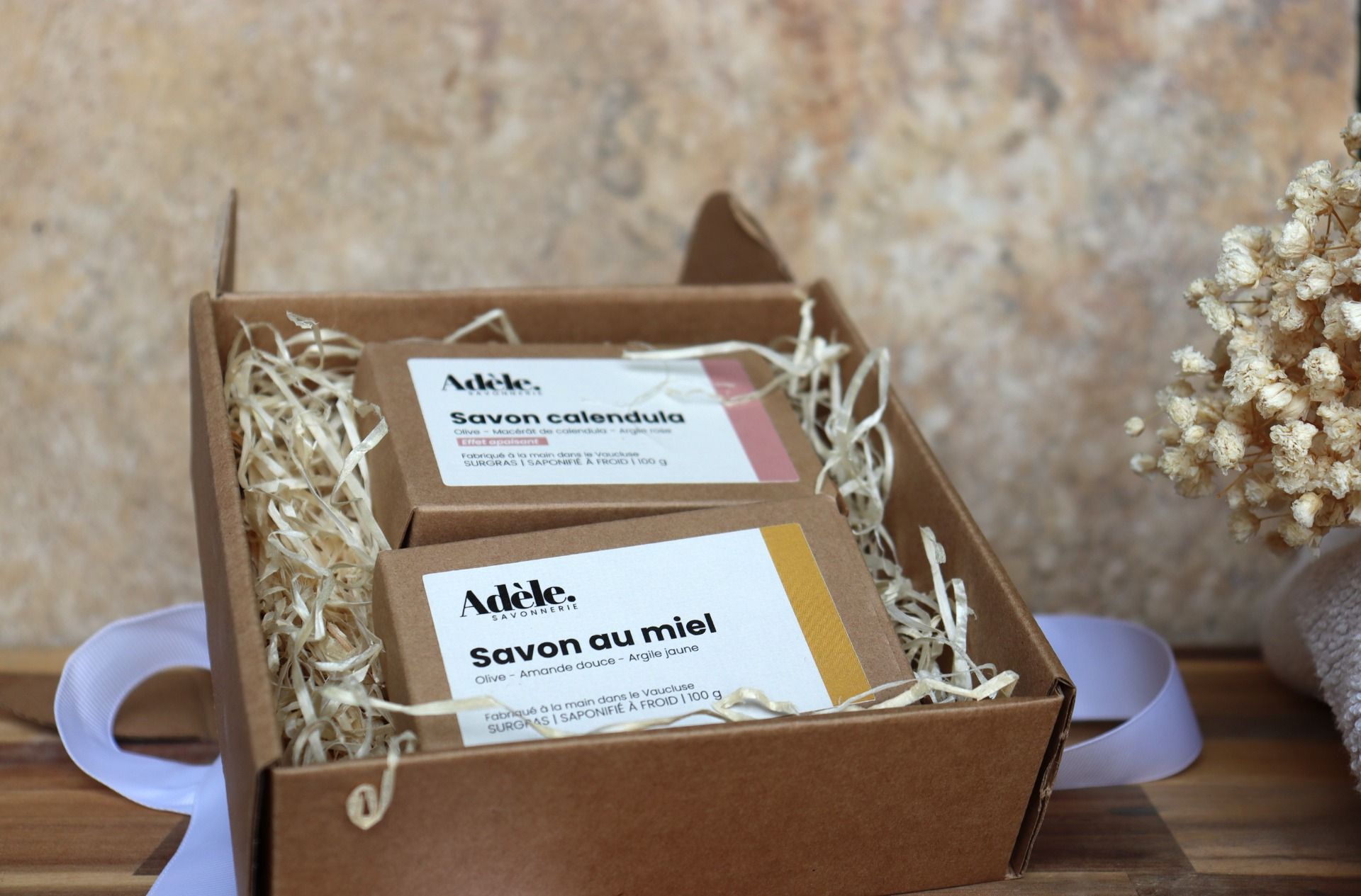 Sélection parmi mes 4 savons : olive, miel, calendula, carotte (détails en description).